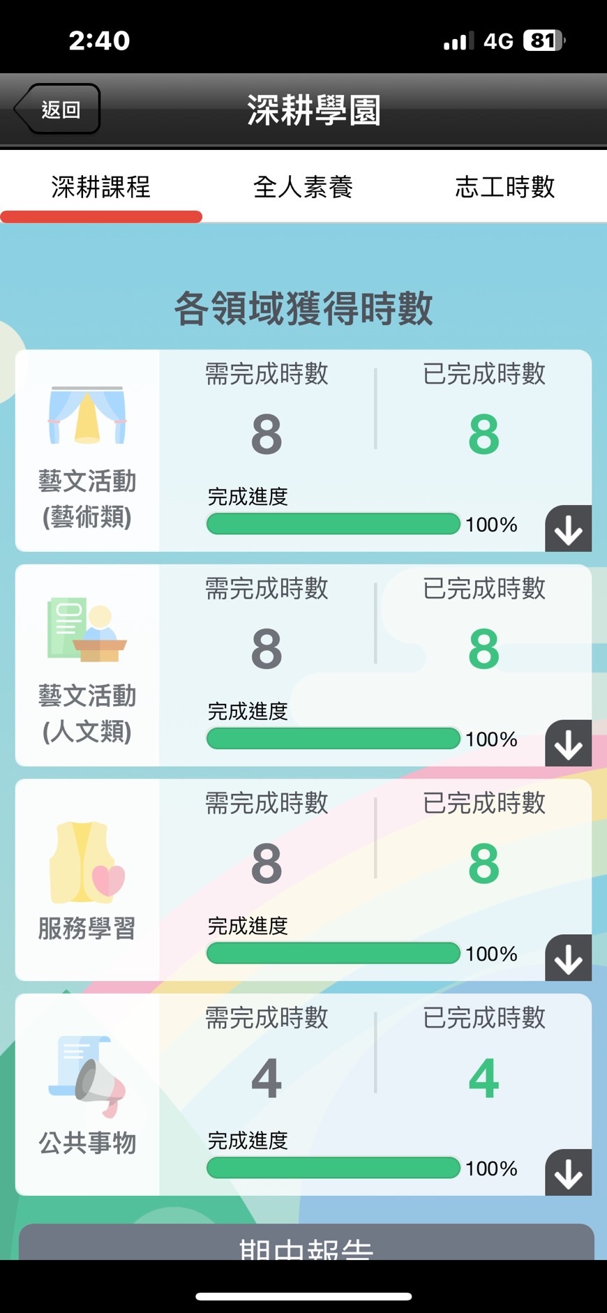 ✔ 服務學習(8小時):以社團服務活動或以學生志工團隊組成活動為主。